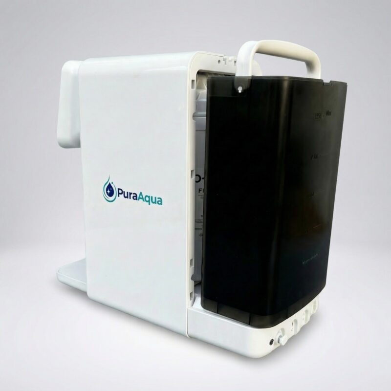 Genießen Sie Trinkwasser in seiner reinsten Form – ganz ohne Festwasseranschluss. Der PuraAqua Premium kombiniert elegantes Design mit medizinischer Filterleistung (MOVA-Technologie). Er entfernt zuverlässig 99,9 % aller Schadstoffe wie Kalk, Medikamentenrückstände, Schwermetalle und Mikroplastik.